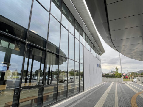 ガラス張りの外壁と高い天井が相まって解放感があり、また、中まで入り込む日差しで明るく印象的な庁舎でした。